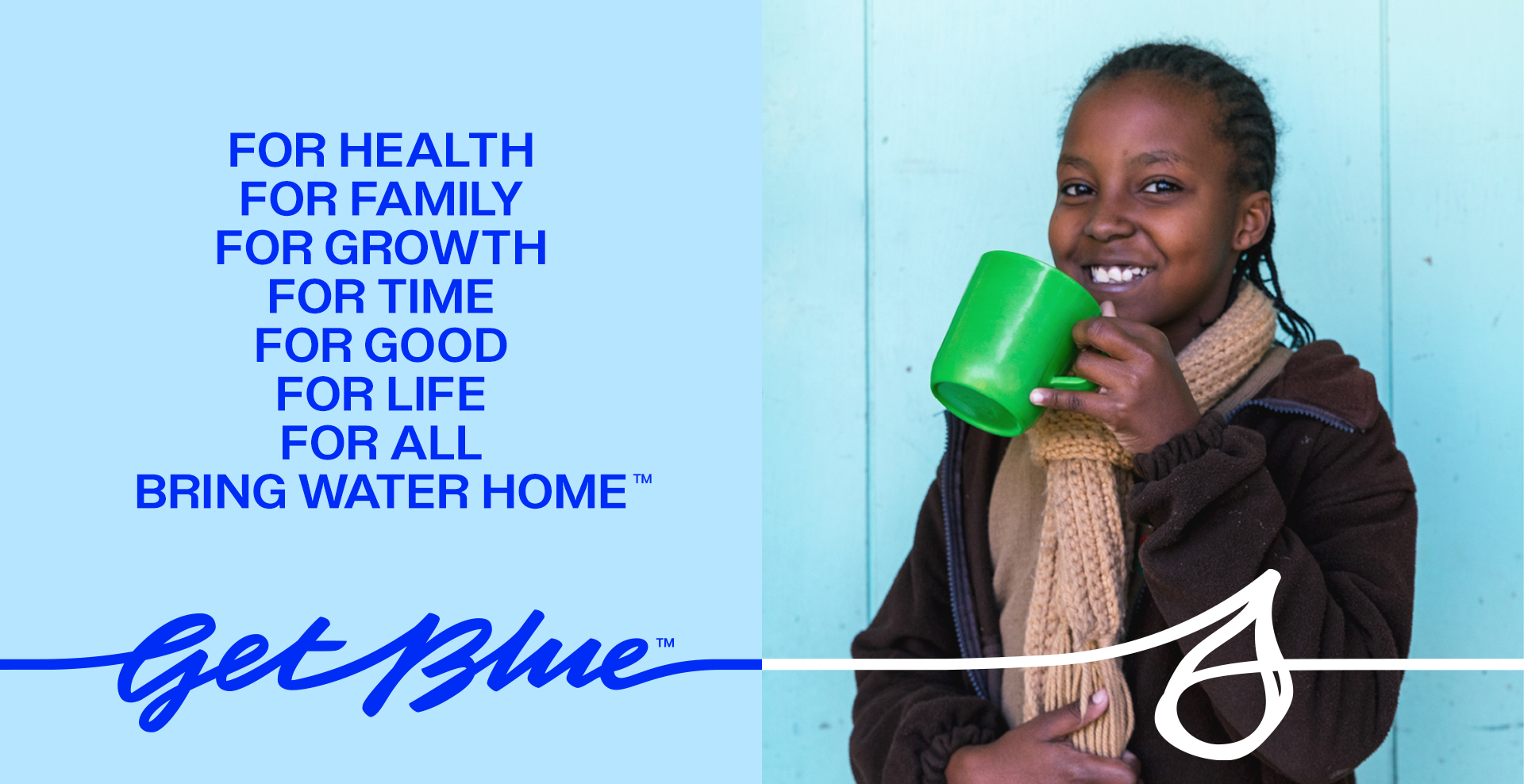 Get Blue products and services will support Water.org to connect families to safe water.